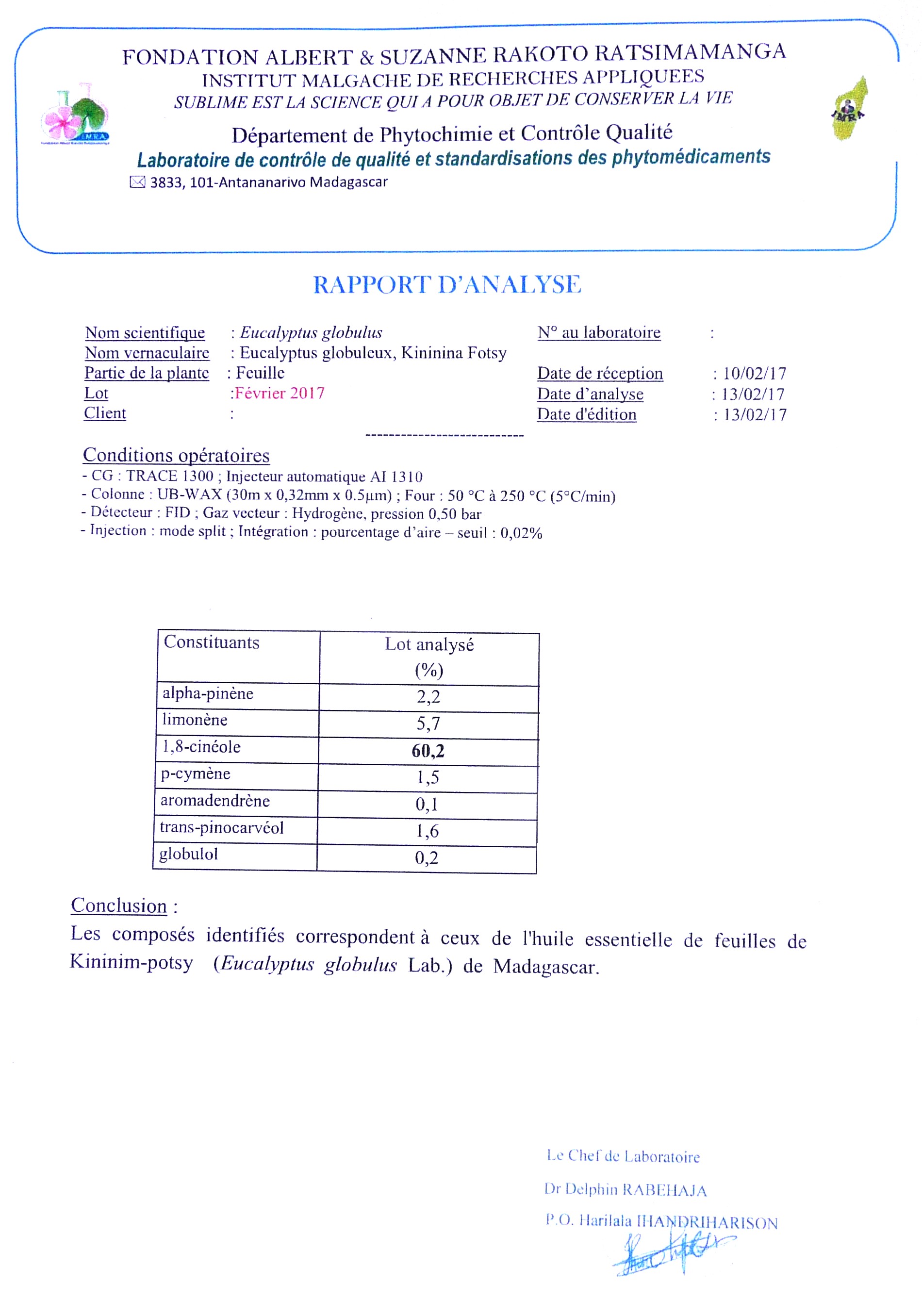 L'huile essentielle d'eucalyptus globulus est recommandée en cas de Bronchite, toux grasse, nez bouché. Celle-ci est également utilisée pour prévenir les grippes,