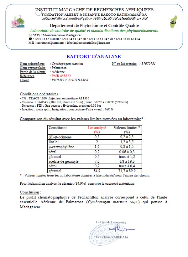 L'huile essentielle de Palmarosa est le déodorant naturel par excellence. Très antibactérienne, elle s'oppose au développement des mauvaises odeurs tout en vous enveloppant d'un parfum doux, floral et frais.